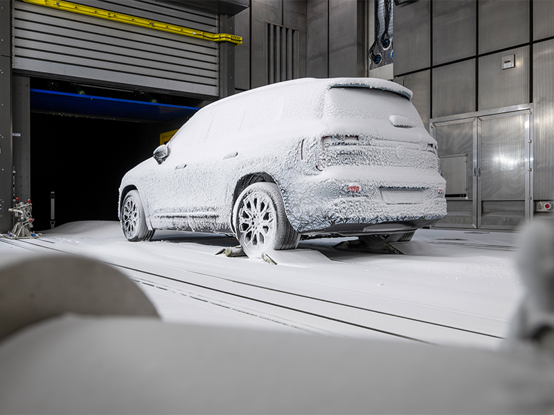 Het temperatuurbereik in de zogenoemde koudetunnel loopt uiteen van -40 tot +40 °C, wat vrijwel alle denkbare weersomstandigheden afdekt, met een ruime buffer. Geavanceerde sneeuwkanonnen maken het mogelijk om verschillende soorten sneeuw te produceren bij een breed temperatuurbereik. De testers van Mercedes-Benz kunnen met de krachtige ventilator van de windtunnel hevige sneeuwstormen simuleren, waarbij sneeuwvlokken met snelheden tot 200 km/h op de testauto afkomen.De twee klimaatwindtunnels van Mercedes-Benz beschikken over zeer geavanceerde technologie. In elke tunnel simuleert een rollentestbank het wegdek. Krachtige elektromotoren drijven elk vier rollen aan, waardoor 4MATIC-modellen onder realistische omstandigheden kunnen worden getest. De testopstellingen zijn ontworpen voor een totaalvermogen tot 780 kW, waarmee topsnelheden tot 265 km/h kunnen worden bereikt. De testauto’s kunnen ook worden bijgetankt en geladen in de tunnels. Het gebouw heeft een oppervlakte van 70 bij 60 meter. Naast de twee testopstellingen bevat het testcomplex kantoren en een controlekamer. Van daaruit kunnen de technici de temperatuur, de luchtvochtigheid, de windsnelheid en andere parameters regelen. Elke test kan nauwgezet worden gevolgd door de grote, volledig geïsoleerde ramen.