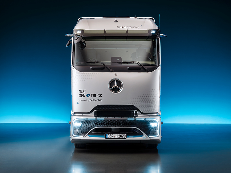De Mercedes-Benz NextGenH2 Truck overtuigt door een hoge technologische maturiteit, mede dankzij het gebruik van ultramoderne componenten uit de serieproductie van Mercedes-Benz Trucks. Daaronder valt ook de ProCabin — reeds beschikbaar in de Mercedes-Benz Actros L en de batterij-elektrische eActros 600 — die nu voor het eerst wordt toegepast in een brandstofceltruck. Hierdoor profiteert de NextGenH2 Truck van een verbetering van de luchtweerstandscoëfficiënt met negen procent ten opzichte van de vorige cabine.De NextGenH2 Truck biedt een rijervaring op hoog niveau, vergelijkbaar met die van zijn batterij-elektrische tegenhanger, de eActros 600. Dynamische vermogensafgifte dankzij onmiddellijk beschikbaar hoog koppel, soepel en comfortabel rijgedrag en een laag geluidsniveau in en rond de cabine behoren tot de bekende voordelen die deze elektrisch aangedreven truck, met waterstof als energiebron, volledig benut. Zelfs onder veeleisende omstandigheden zoals steile hellingen of zware belading levert het voertuig tot 340 kW in Economy-modus en tot 370 kW in Power-modus.