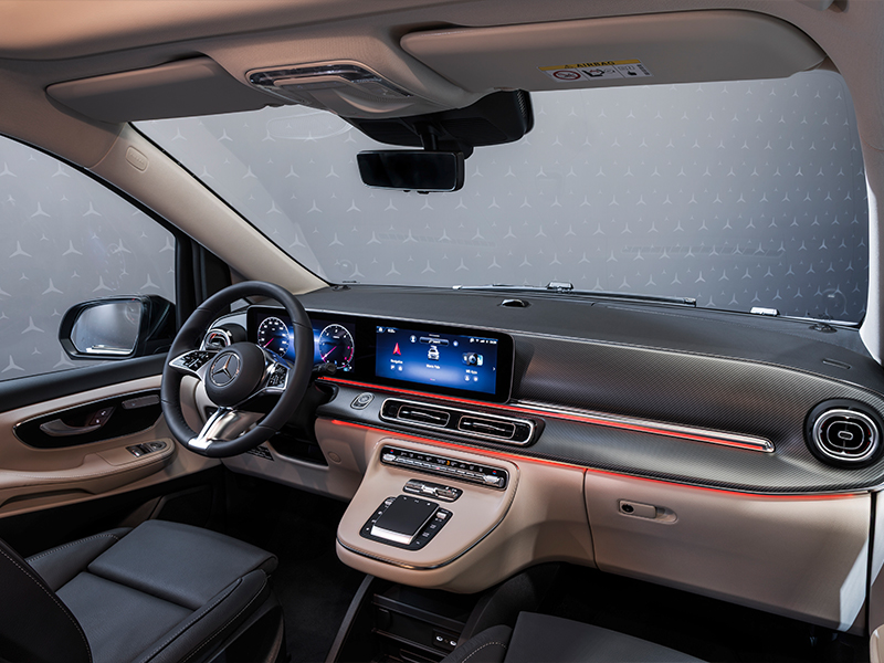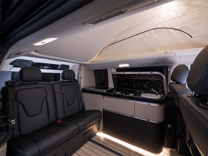 - Nog slimmere connectiviteit: het Mercedes‑Benz Advanced Control (MBAC)-systeem, dat de Marco Polo al sinds 2019 tot een mobiele smart home maakt, is verder ontwikkeld en heeft nieuwe functies gekregen. Zo kunnen het nieuwe schuifdak, de sfeerverlichting in het hefdak en het vernieuwde geluidssysteem nu centraal en intuïtief worden bediend via het display van het infotainmentsysteem of de MBAC smartphone-app.