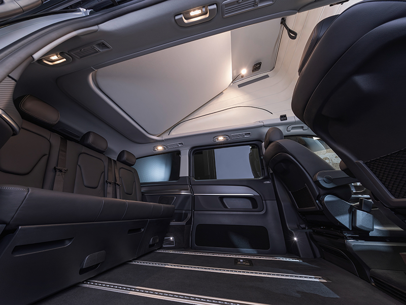 - Nieuw verlichtingsconcept: de LED-sfeerverlichting in het hefdak biedt verschillende, door de gebruiker instelbare lichtscenario’s - van koel tot warm en gezellig - afgestemd op persoonlijke wensen. Het nieuwe schuifdak1 zorgt voor extra daglicht en frisse lucht in het interieur.